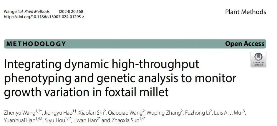 基于谷豐光電高通量表型平臺的技術(shù)支撐,山西農(nóng)業(yè)大學(xué)雜糧分子育種團(tuán)隊在《Plant Methods》國際權(quán)威期刊發(fā)表研究論文(題為 “Integrating Dynamic High-Throughput Phenotyping and Genetic Analysis to Monitor Growth Variation in Foxtail Millet”),取得了突破性成果: