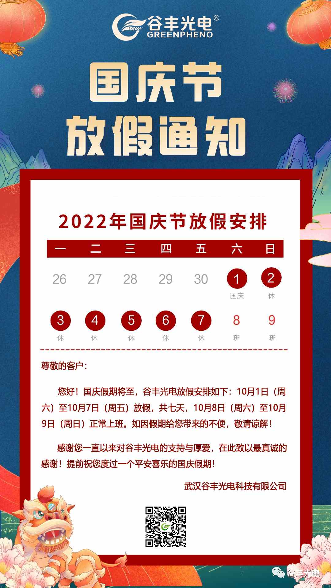 放假通知 | 谷豐光電祝大家國慶節(jié)快樂!