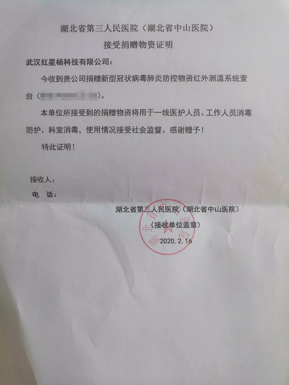湖北省第三人民醫(yī)院(湖北省中山醫(yī)院)接受捐贈(zèng)物資證明