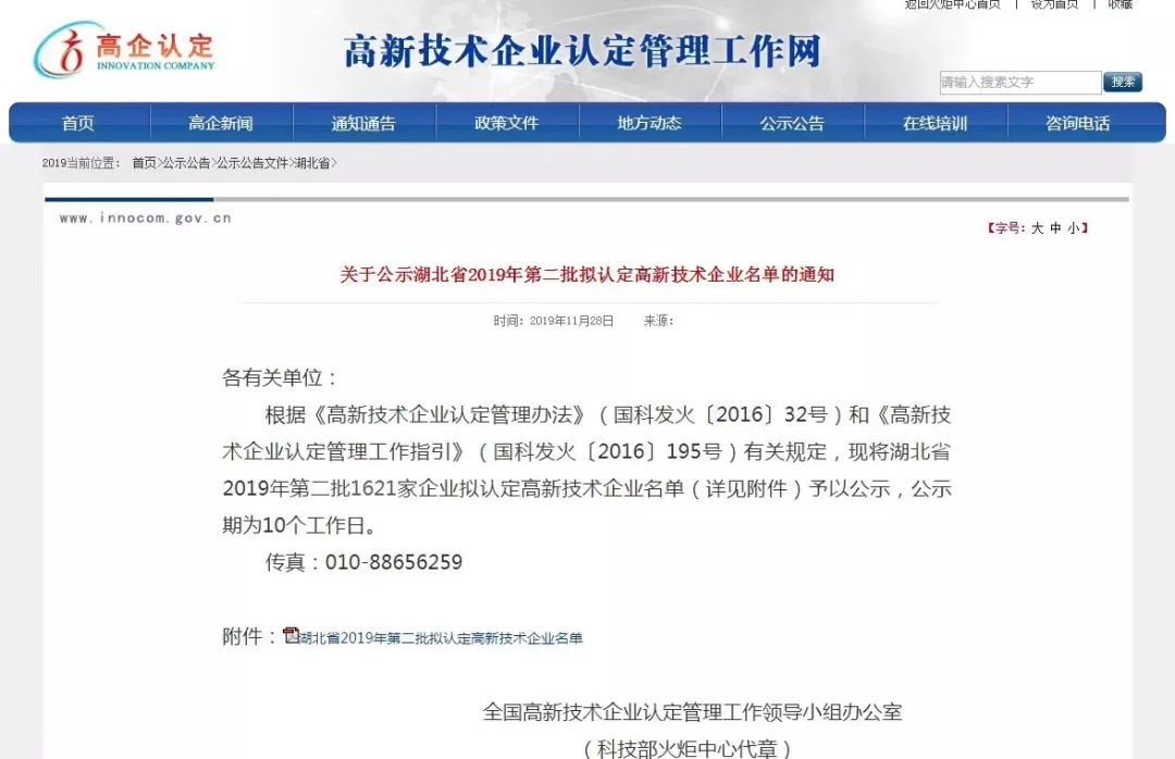 2019年11月28日,湖北省2019第二批高新技術(shù)企業(yè)名單予以公示,谷豐光電被認(rèn)定為湖北省第二批高新技術(shù)企業(yè)。