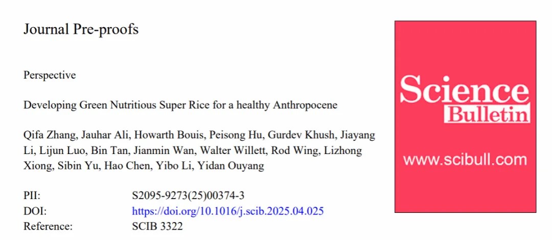 近日,中國科學(xué)院院士、華中農(nóng)業(yè)大學(xué)生命科學(xué)技術(shù)學(xué)院張啟發(fā)教授和國際水稻研究所首席科學(xué)家Jauhar Ali研究員,聯(lián)合國際糧食政策研究所Howarth Bouis研究員、中國水稻研究所胡培松院士、美國加尼福利亞大學(xué)戴維斯分校Gurdev Khush院士、崖州灣國家實(shí)驗(yàn)室李家洋院士、上海市農(nóng)業(yè)生物基因中心羅利軍研究員、國家糧食和物資儲備局科學(xué)研究院譚斌研究員、中國農(nóng)業(yè)科學(xué)院作物科學(xué)研究所萬建民院士、哈佛大學(xué)Walter Willett教授、美國亞利桑那大學(xué)Rod Wing教授,以及華中農(nóng)業(yè)大學(xué)水稻團(tuán)隊(duì)熊立仲教授、余四斌教授、陳浩教授、李一博教授和歐陽亦聃教授,在Science Bulletin上發(fā)表了題為“Developing Green Nutritious Super Rice for a healthy Anthropocene”的展望論文,對水稻育種和稻米產(chǎn)業(yè)的使命和前景提出了新的倡議。