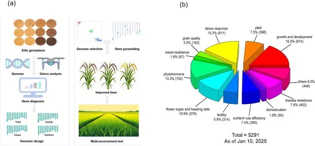 20年來,國際水稻功能基因組研究已鑒定并解析了5000多個(gè)與各類性狀及生物學(xué)過程相關(guān)的基因,包括產(chǎn)量性狀與抽穗期基因;稻瘟病、白葉枯病和褐飛虱等病蟲害抗性基因;高低溫、干旱等非生物脅迫相關(guān)抗性基因;水分及氮利用效率基因;以及常規(guī)的精米品質(zhì)基因。這些成果為綠色營養(yǎng)超級稻育種奠定了堅(jiān)實(shí)的基因和資源基礎(chǔ)。然而,一些重要性狀,如對螟蟲、卷葉螟、以及稻曲病等病蟲害的抗性基因仍然缺乏。更重要的是,全谷物品質(zhì)相關(guān)性狀的功能基因組研究很少,目前可用于此類性狀遺傳改良的基因極為有限。
