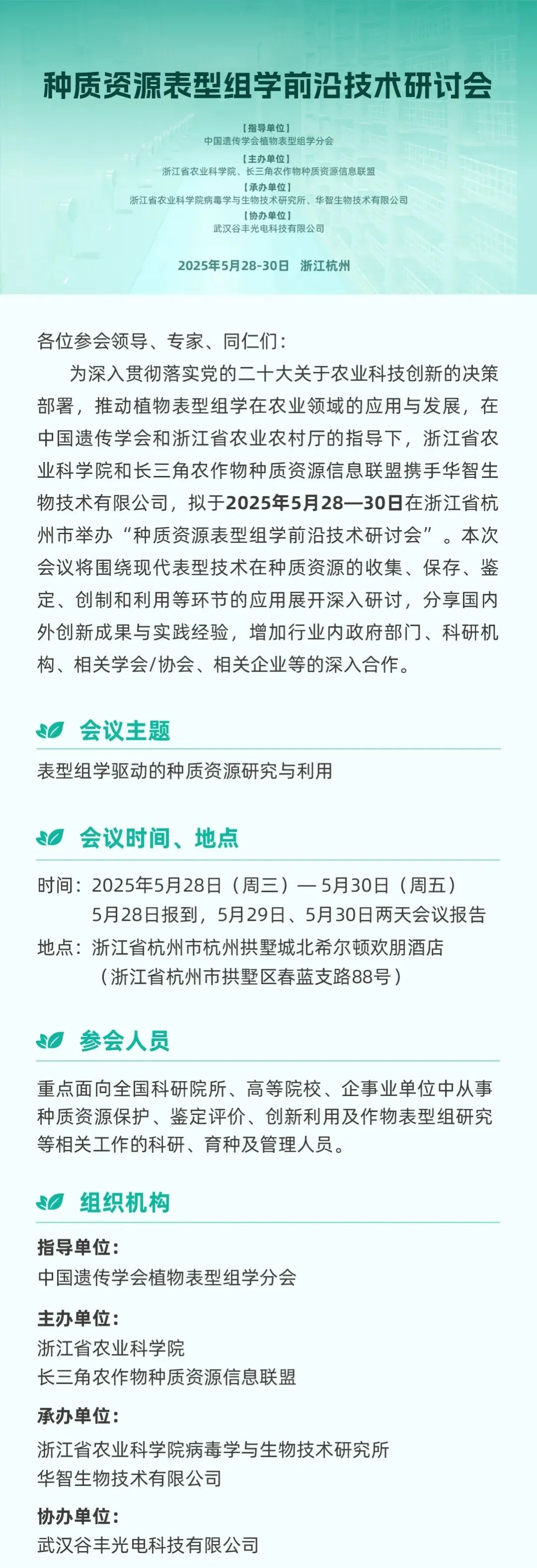 與您相約:種質(zhì)資源表型組學(xué)前沿技術(shù)研討會即將在杭州召開!