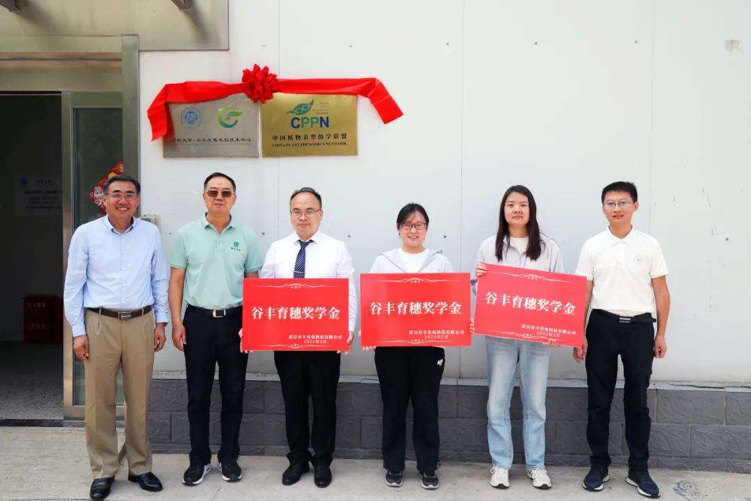 2025年5月28日,中國植物表型組學(xué)聯(lián)盟(China Plant Phenomics Network, CPPN)成員單位河南大學(xué)揭牌暨“谷豐育穗獎學(xué)金”頒獎儀式在河南大學(xué)成功舉行。由中國科學(xué)院院士、華中農(nóng)業(yè)大學(xué)張啟發(fā)教授、崖州灣國家實驗室副主任陳凡研究員、河南大學(xué)宋純鵬教授、河南大學(xué)副校長苗雨晨教授共同揭牌。武漢谷豐光電科技有限公司董事長孫晉武為河南大學(xué)抗逆改良中心團隊頒發(fā)了“谷豐育穗獎學(xué)金”。